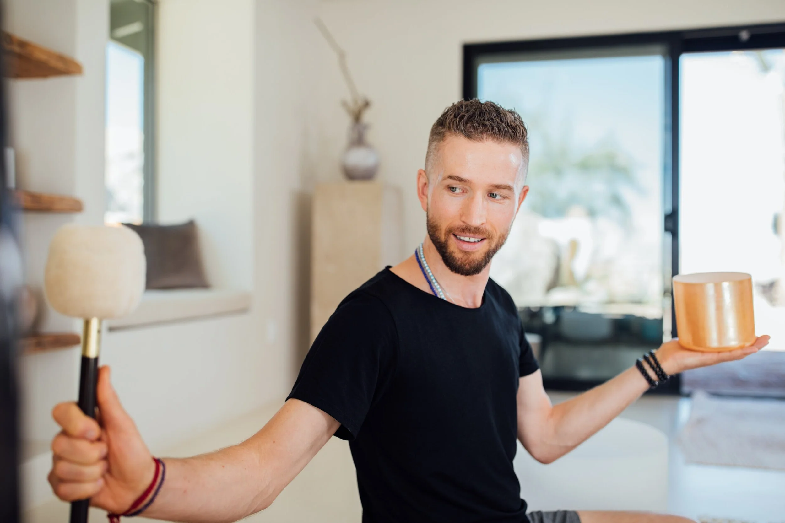 “The beauty of working with sound in meditation is that it can quite literally tune us into a state of calm and peace,” says Avery Whitmore, an LA-based sound healer. “Our brain will naturally begin to synchronize with the rhythm of music, so as we play slower, calming rhythms, we can ease our mind into slower brain wave states.”