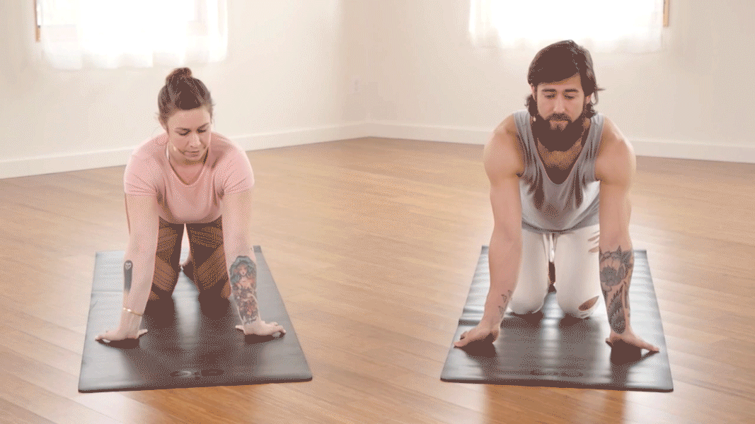 From Tabletop Pose, flip your fingertips to face your knees.